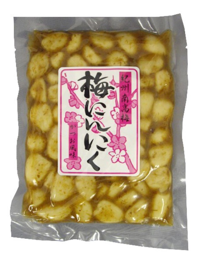 120g においを抑えたにんにくを使用し、紀州南高梅の梅肉やかつお節とともに調味した、程よい酸味のにんにく漬けです。 ■原材料:にんにく(中国産)、梅肉(紀州南高梅)、かつお節、漬け原材料(砂糖、発酵調味料、梅酢、みりん、かつおエキス、酵母エキス、しょうゆ、寒天) ■規格補足:アレルゲン物質:小麦・大豆 ■保存方法:常温 栄養成分(100g当り) エネルギー:101kcal たんぱく質:4.4g 脂質:0.2g 炭水化物:20.5g 食塩相当量:5.3g ■ブランド名 マルアイ食品