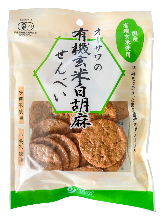 60g 国産有機玄米100%使用 白ごまの風味豊か ■有機白ごまをたっぷり練り込んだ ■有機たまり醤油で香ばしく味付け ■砂糖不使用 原材料 有機玄米(国産)、有機白胡麻(エジプト、ボリビア、エチオピア)、有機たまり醤油 販売者名・輸入者名 オーサワジャパン株式会社