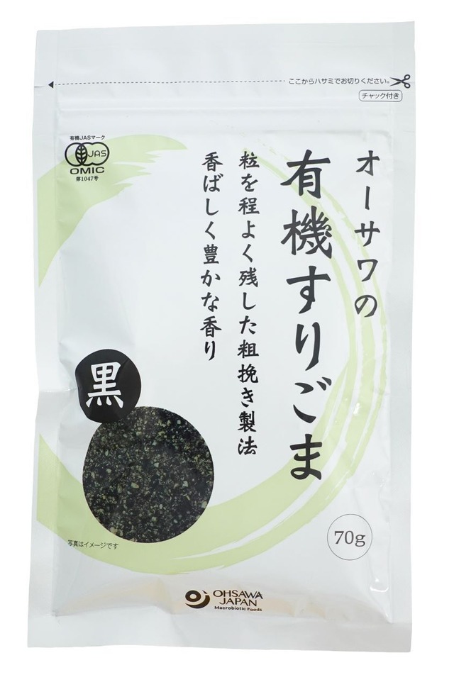 70g 有機黒ごま100% ■香ばしく豊かな香り ■粒を程よく残した粗挽き製法 原材料 有機黒胡麻(パラグアイ、ボリビア) 販売者名・輸入者名 オーサワジャパン株式会社