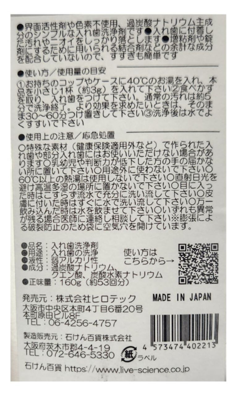 入れ歯・マウスピース用洗浄剤 つけ置きするだけで汚れや臭いをしっかり落とす
