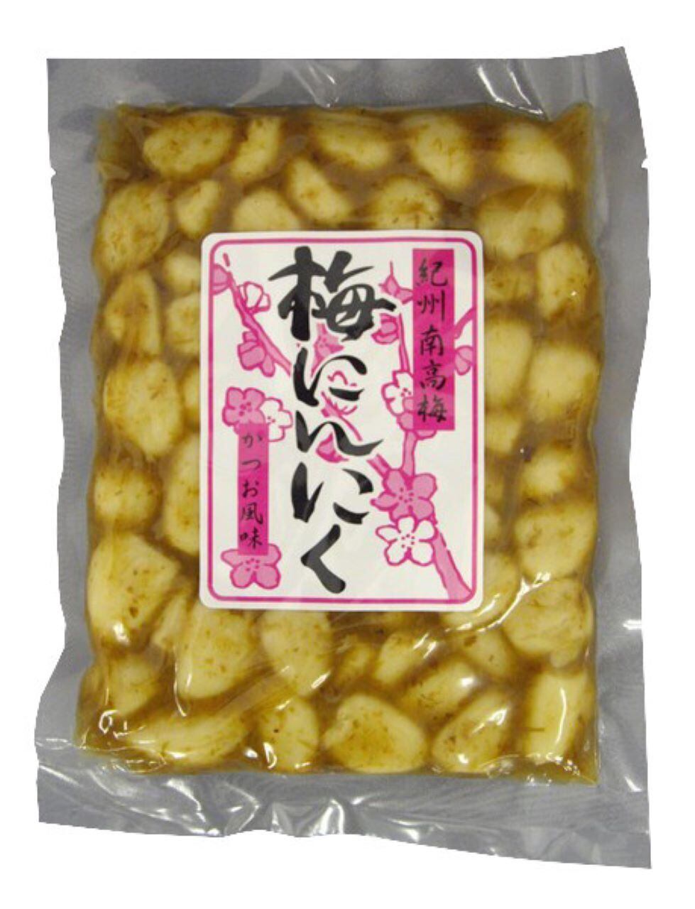 においを抑えたにんにくを使用し、紀州南高梅の梅肉やかつお節とともに調味した、程よい酸味のにんにく漬けです。